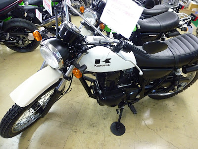白いタンク2台、KAWASAKIグリーン1台。グリーンのみインジェクションで、白はキャプレターだそうだ。お値段的には白が低い。1台はいじられていて、1台はほぼノーマルだ。