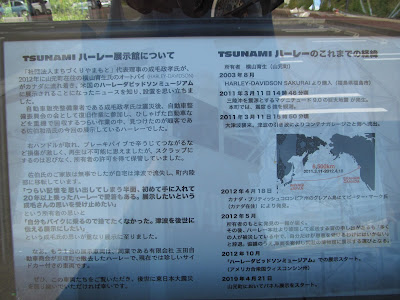 津波ハーレーとは、単純に言って2011年3月の東日本大震災の津波の被害に遭ったハーレーダビッドソンのことだ。展示館には2台のハーレーが展示されている。