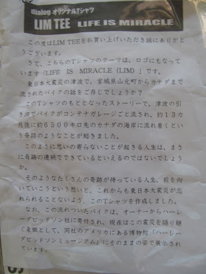 産直市場では、Tシャツがひっそりと売られている。表にも裏にもハーレーダビッドソンの文字は一つも入っていない。だけど、背中には津波ハーレーの物語が記されている。