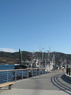 港町は素敵だ。歩く人は少なかったが、3.11の津波被害に負けずに残っている建物も一部修復されて残っているらしく、風情のある街並みが続く。一方、新しく整備された港風景も清々しい。