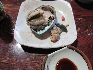 鮑は実と口と肝に綺麗に分けられ、キラキラ光る貝殻に盛り付けられていた。小さめの鮑だったが、コリコリでとても美味しかった。憧れでしかなかった鮑。美味しさと感動で胸がいっぱいだ。