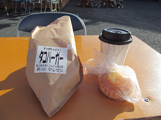 さんさん商店街で軽くランチ。タコと冷凍の煮ツブ、シードルが入ったリュックが重い。融けてしまわないかが心配だ。