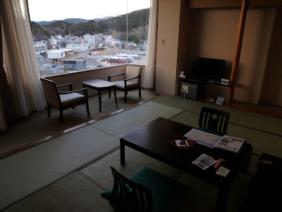 一日目は気仙沼泊。港を見下ろす丘の上の温泉のあるホテルだ。室内の大浴場からも露天風呂からも、漁港と目の前に停泊する漁船が見え、部屋の大きな窓にも港の風景が広がる。